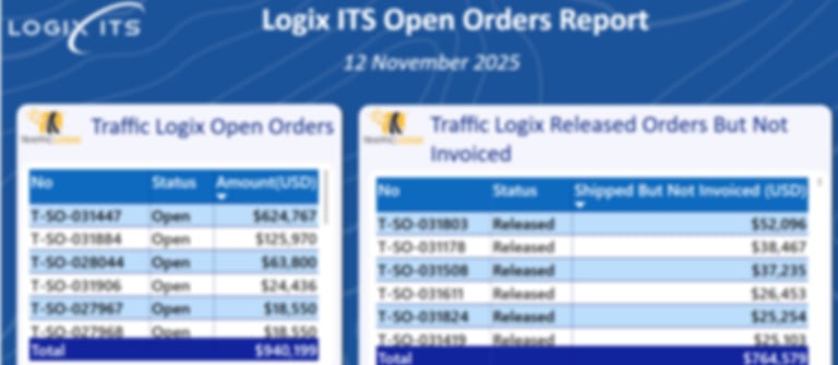 Visualizes open orders and shipped-not-invoiced status to estimate revenue backlog and identify bottlenecks in order-to-cash